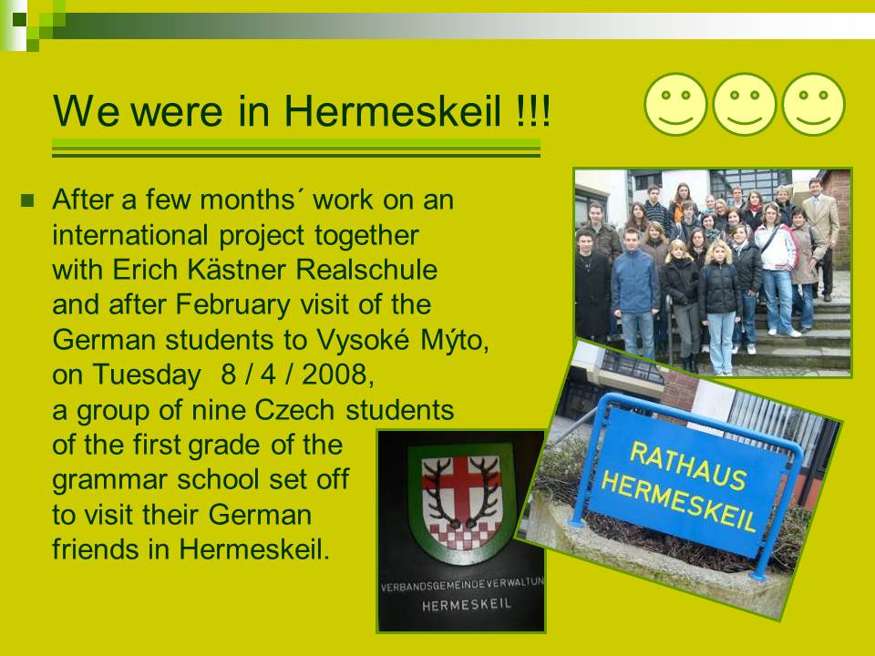 HERE you can see a short presentation from the visit of the German students to Vysoké Mýto.